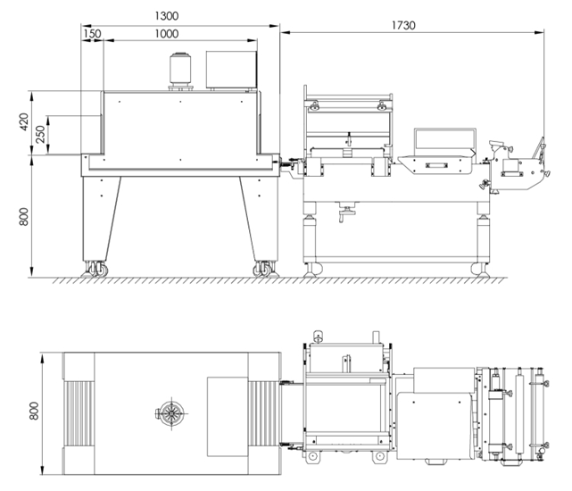 本套設備由熱收縮機和封切機兩個部分組成。采用”L”型人工封切,然后自動傳輸進收縮機室,完成收縮過程;