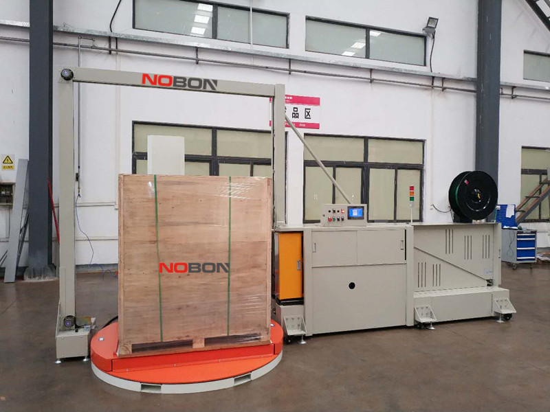 本機(jī)器為全自動(dòng)纏繞機(jī)搭配全自動(dòng)穿箭打包機(jī)實(shí)現(xiàn)打包一體機(jī),配備遙控器遠(yuǎn)程使用,全程只需要按一個(gè)啟動(dòng)按鈕。