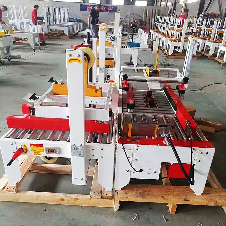? ? ? 什么是膠帶封箱機(jī)?膠帶封箱機(jī)就是用透明或印字膠帶給紙箱或泡沫箱等封口包裝的機(jī)器,可以單獨(dú)使用,也可和其它機(jī)器搭配成自動化輸送線使用。