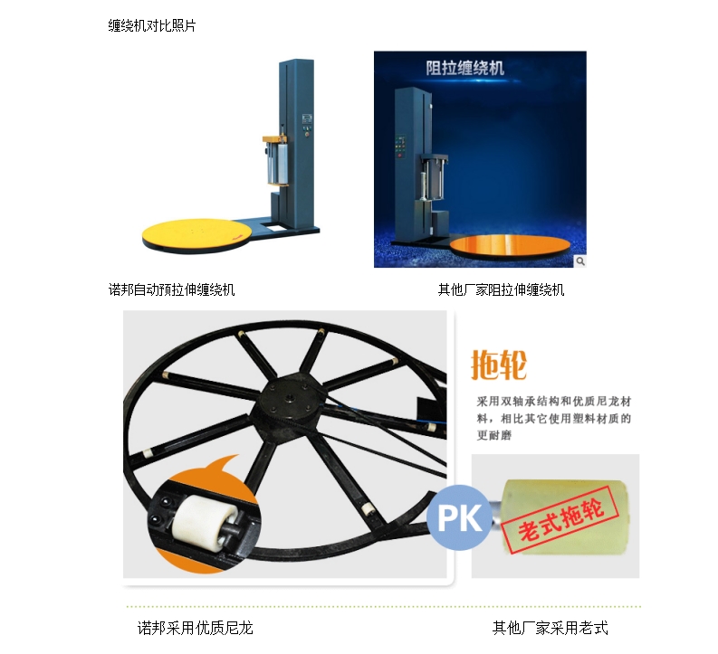 產(chǎn)品知識纏繞機(jī)的工作原理是將被纏繞物體放置于轉(zhuǎn)盤中央,啟動轉(zhuǎn)盤電機(jī)轉(zhuǎn)動,自然地帶動轉(zhuǎn)盤轉(zhuǎn)動,使物體實(shí)現(xiàn)了外圍的纏繞。與此同時(shí)升降機(jī)電機(jī)也啟動,帶動整個(gè)組合體做上下運(yùn)動,達(dá)到物體高度方向的纏繞,這就實(shí)現(xiàn)了物體整個(gè)外表的纏繞包裝。為了能更進(jìn)一步的讓用戶了解纏繞機(jī)性能,選擇適合自己公司的纏繞機(jī)設(shè)備,這里先從結(jié)構(gòu)、功能和內(nèi)部配置等方面,主要對托盤纏繞機(jī)包裝設(shè)備進(jìn)行一下簡單的對比,希望能對您的設(shè)備選型起到作用